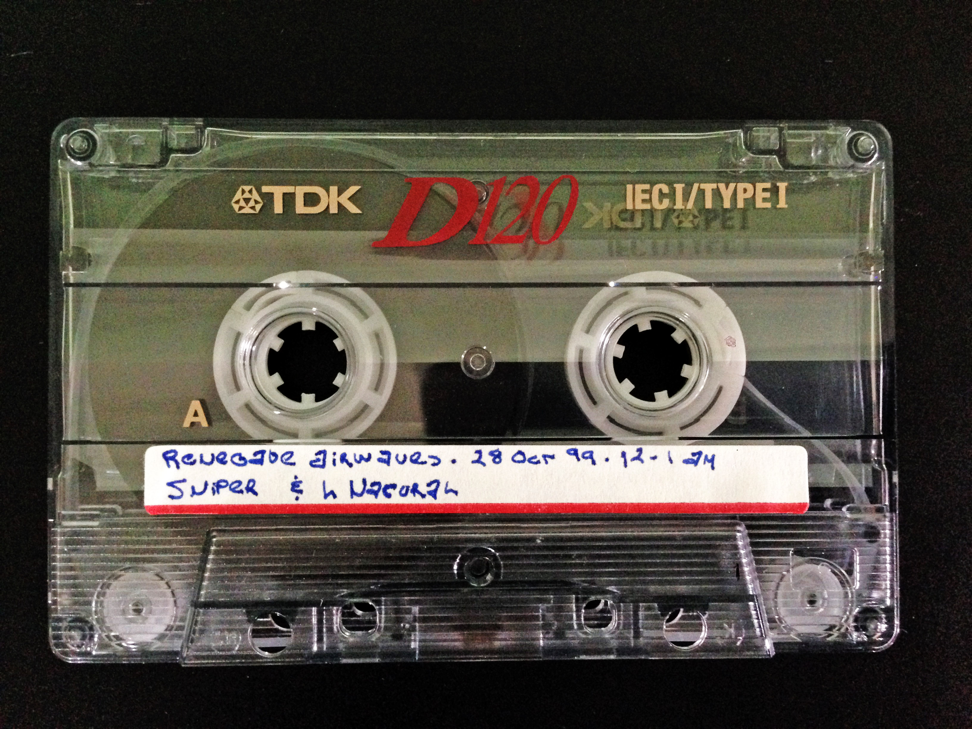 The tape starts in the middle of a song, the last track of the 1Groove.com's 11pm-12am DJ. Back in the day this live podcast would start at least an hour or more before the 89.5 FM radio portion of the show with some up and coming DJ's. Even thinking about it now I can appreciate the effort that must have taken in 99 when there was no widespread high speed internet yet. I think today we take it for granted how fast internet is sometimes when back in the day a stream like this probably would have prevented you from doing much of anything else with a regular dial up connection.